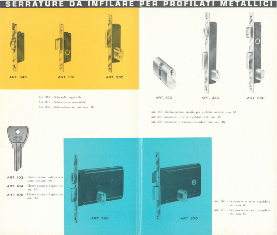 The economic boom in Italy was beginning and the small company soon started to enlarge its activity focusing on the production of locks for wooden doors.